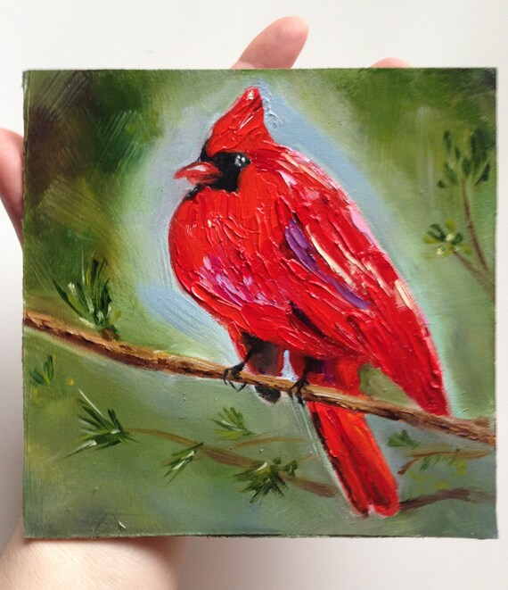 Digital portrait painting of a three red and black cardinal birds on a pine tree in winter xmas. Original oil painting artwork bright red cardinal bird 11 x 14 signed canvas. This class would demonstrate how to paint a cardinal bird in watercolor.